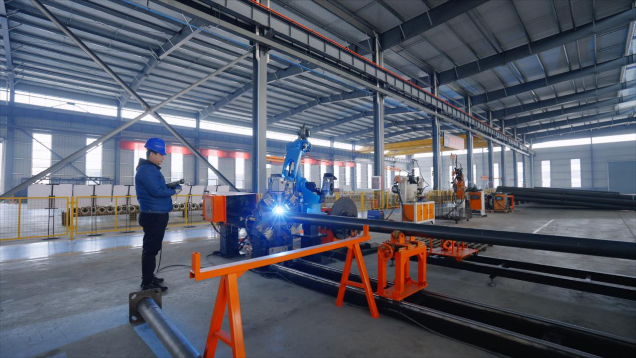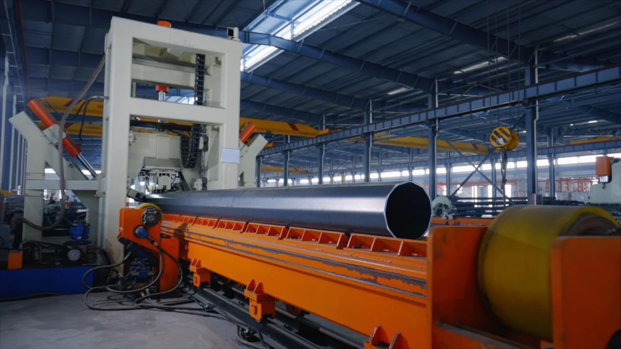 The pole workshop covers an area of 18,000 square meters, with seven standardized production workshops including a pole rolling workshop, welding workshop, sheet metal workshop, precision workshop, and spraying workshop.